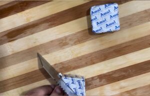 4. Take 2 Amul cheese cubes or 200 grams processed or mozzarella cheese. Keep in mind that the cheese cubes must be cut directly from the refrigerator,Taking cheese cubes fresh.It is better to buy Amul brand cheese cubes as per your choice.