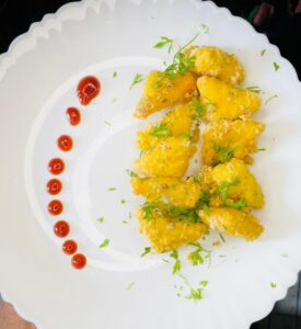 1O.Serve Cheese Cube Pakoda hot with with mint chutney or tomato ketchup.
