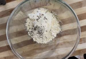 1. Firstly, in a mixing bowl, take ½ cup gram flour (besan).